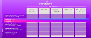 - アクセンチュアの業務範囲:アクセンチュアは、戦略コンサルティングからITコンサルティング、エンジニアリングまで幅広いサービスを提供しています。に取り組んでいます。