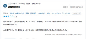 - フューチャーアーキテクトから他のコンサルや上流工程の仕事に転職する人が多い。残留率は業界平均より低め。