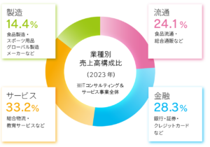 フューチャーアーキテクトの業界別の売上や実績は以下のとおり。