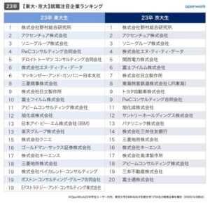 東大・京大の就職注目企業ランキング