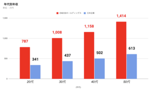 エネオスHD年代別年収グラフ